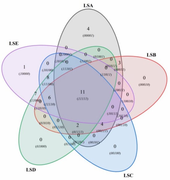| LSA | 9.23 ± 0.11 c | 1.42 ± 0.02 d | 3.75 ± 0.46 a | 4.29 ± 0.30 c | 0.94 ± 0.12 b | 337.33 ± 2.05 c | 9.50 ± 0.22 a | 5.30 ± 0.14 d | 64.33 ± 1.07 b |