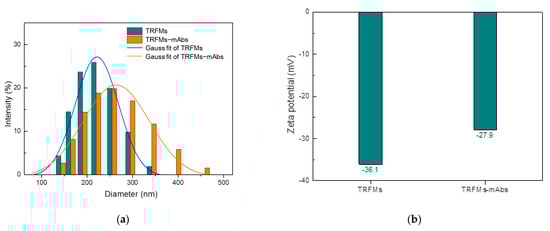 Identification of TRFMs and TRFMs-mAbs: (a) particle size; (b) Zeta potential.