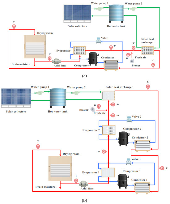 - Wang, Y.; Li, M.; Qiu, Y.; Yu, Q.; Luo, X.; Li, G.; Ma, X. Performance analysis of a secondary heat recovery solar-assisted heat pump drying system for mango. Energy Explor. Exploit. 2019, 37, 1377–1387. [Google Scholar]