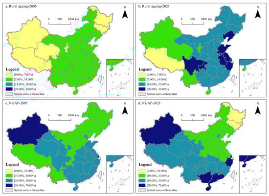 Spatial pattern of China’s rural ageing and NGAP in 2005 and 2021.