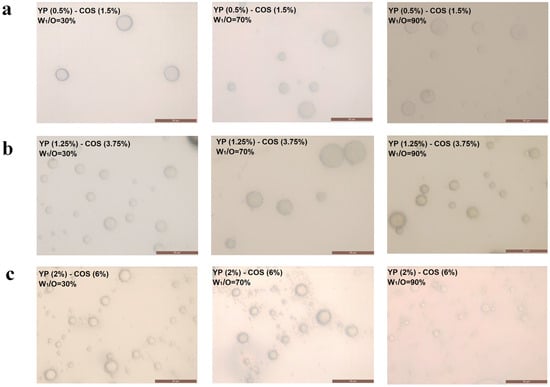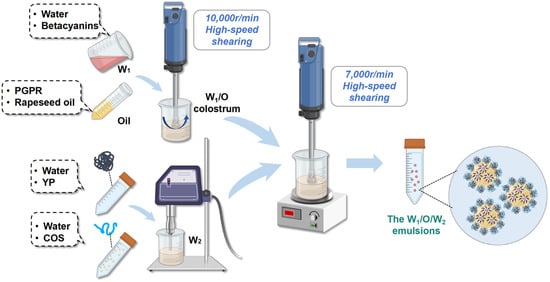 2.4. Preparation of YP-COS Stabilized W1/O/W2 Emulsions