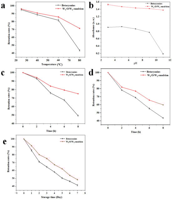 - Pagano, A.P.E.; Khalid, N.; Kobayashi, I.; Nakajima, M.; Neves, M.A.; Bastos, E.L. Microencapsulation of betanin in monodisperse W/O/W emulsions. Food Res. Int. 2018, 109, 489–496. [Google Scholar] [CrossRef]