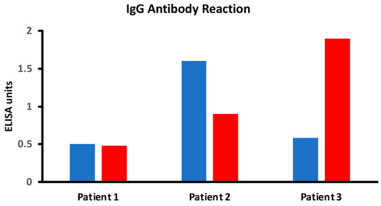 In the intestinal lumen, food proteins are digested into small or large peptides. If these peptides do not fully convert into amino acids, they can elicit both cellular- and antibody-mediated immune responses. Thermal modification, such as cooking or other food manipulations, often stabilizes these peptides into secondary, tertiary, and quaternary structures that resist enzymatic digestion. Thus, in comparison to raw foods, cooked foods are more likely to present many undigested immunodominant peptides to antigen-presenting cells and T cells, resulting in enhanced antibody production against these neo-peptides [17,56,57,58,59,60]. However, another possible scenario is that the denaturation of protein will hide some of these immunodominant epitopes compared to the more exposed ones of the linear protein molecule. In this case, the immune system may react to some epitopes on linear proteins, but not against cooked or modified food proteins, so that some individuals may produce more antibodies against the primary structure instead of the more complex structures of the modified food forms. Figure 4 shows examples of three different patients showing three different reaction scenarios involving raw vs. cooked foods. Many research studies have shown that individuals may not react against the primary structure or the native form of proteins or peptides, but may react to secondary, tertiary, and quaternary structures of the proteins and peptides due to denaturation, the Maillard reaction, and other factors [28,58,59,60].