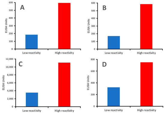 Our data and the findings from other investigations further confirmed that food additives or thermal processing results in the generation of new immunodominant epitopes and the production of much higher antibody levels in some individuals [24,25,26,27,39,45,46,47].