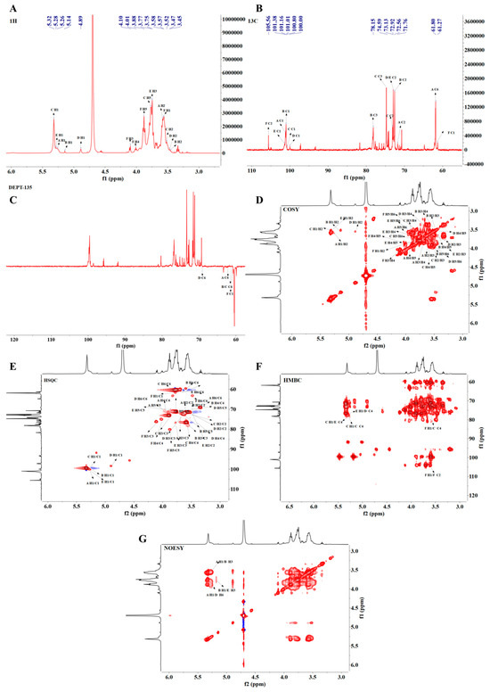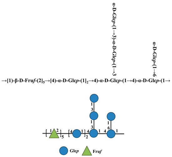| D | →4,6)- α-D-Glcp-(1→ | 4.87 | 3.48 | 3.66 | 3.4 | 3.56 | 3.84 | 3.85 |