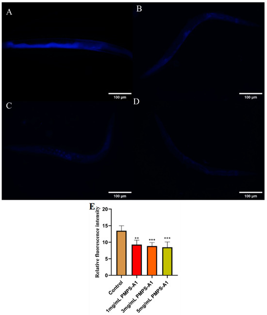 3.8.2. PMPS-A1 Reduce Lipofuscin Accumulation in C. elegans