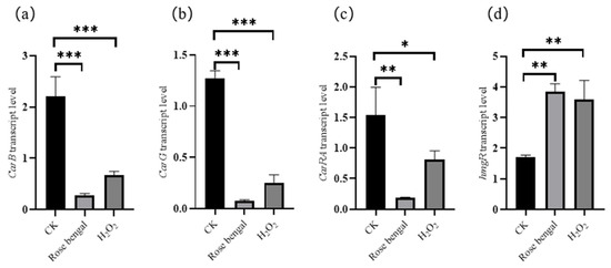 APA StyleDeng, J., Chen, Y., Lin, S., Shao, Y., Zou, Y., Zheng, Q., Guo, L., Lin, J., Chen, M., & Ye, Z. (2025). Molecular Regulation of Carotenoid Accumulation Enhanced by Oxidative Stress in the Food Industrial Strain Blakeslea trispora. Foods, 14(9), 1452. https://doi.org/10.3390/foods14091452