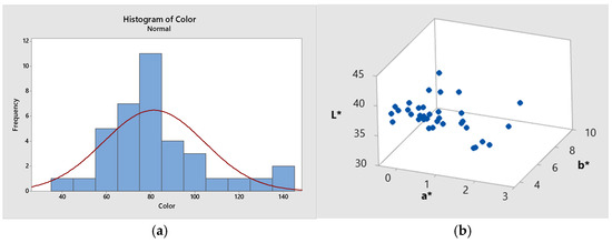 Color (mm Pfund) (a) and L*, a*, b* parameters (b) in strawberry tree honey samples (n = 37). L* represents the clarity (L* = 0 black and L* = 100 colorless), a* the green/red color component (a* > 0 red, a* < 0 green), and b* the blue/yellow color component (b* > 0 yellow, b* < 0 blue).