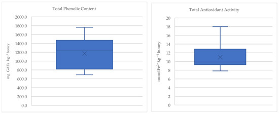The collected honey samples were also analyzed for their total phenolic content (TPC) and their total antioxidant activity by applying the FRAP assay (Figure 2).