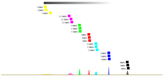 In Figure 11, the unsteamed samples are located in the far-right region, clearly indicating significant changes in volatile organic compounds (VOCs) before and after steaming, which is highly consistent with the results obtained from the electronic nose analysis. Further analysis also revealed that as the steaming time increased, the distance between each sample group and the 0 min sample becomes greater (except for the 10 min group), indicating evident differences in the VOC content in fish meat at different steaming times. The proximity of the 10 min and 0 min samples may be attributed to the reduction of aldehydes and the increase in alcohols at 10 min. The nearest neighbor distance analysis (Figure 12) showed results consistent with those of the PCA.