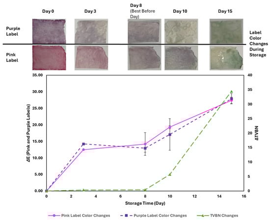 3.5. TVBN Accumulation and Its Impact on pH-Responsive Label Color Changes