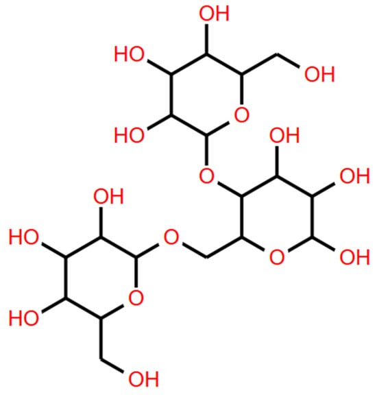 GMs are composed of galactose and mannose units, forming a linear molecular structure made up of D-mannose chains with β-1,4 linkages. Branches of D-galactose are attached via (1,6) linkages every five or four mannose units [6,7]. GMs show a mannose/galactose (M/G) ratio that varies depending on the extraction source. In their natural form, galactomannans are intertwined with other components of the cellular matrix, which prevents their functional properties from being fully utilized. Therefore, galactomannans must be extracted to release and purify them for use in various industrial applications. The extraction method also influences the M/G ratio [8].