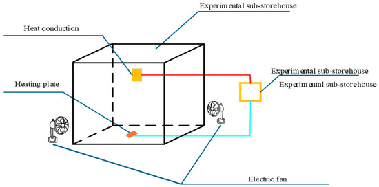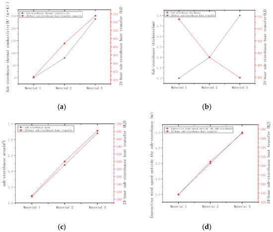 - Experimental results demonstrated that the thermal conductivity of the sub-storehouse material exhibits a strong correlation with the storage area and airflow velocity. Conversely, the thickness and type of material were found to exert a relatively minor influence on thermal performance;