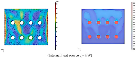 3.2.1. Analysis of Flow Field and Temperature Field Simulation Results