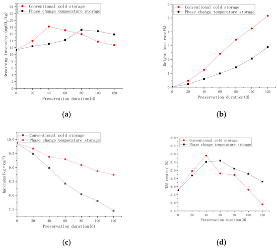- Apples stored in the PTS exhibit superior quality characteristics compared to those in conventional cold storage. Specifically, PTS-stored apples demonstrated higher firmness and TSS content, coupled with lower weight loss rates and respiration intensity.