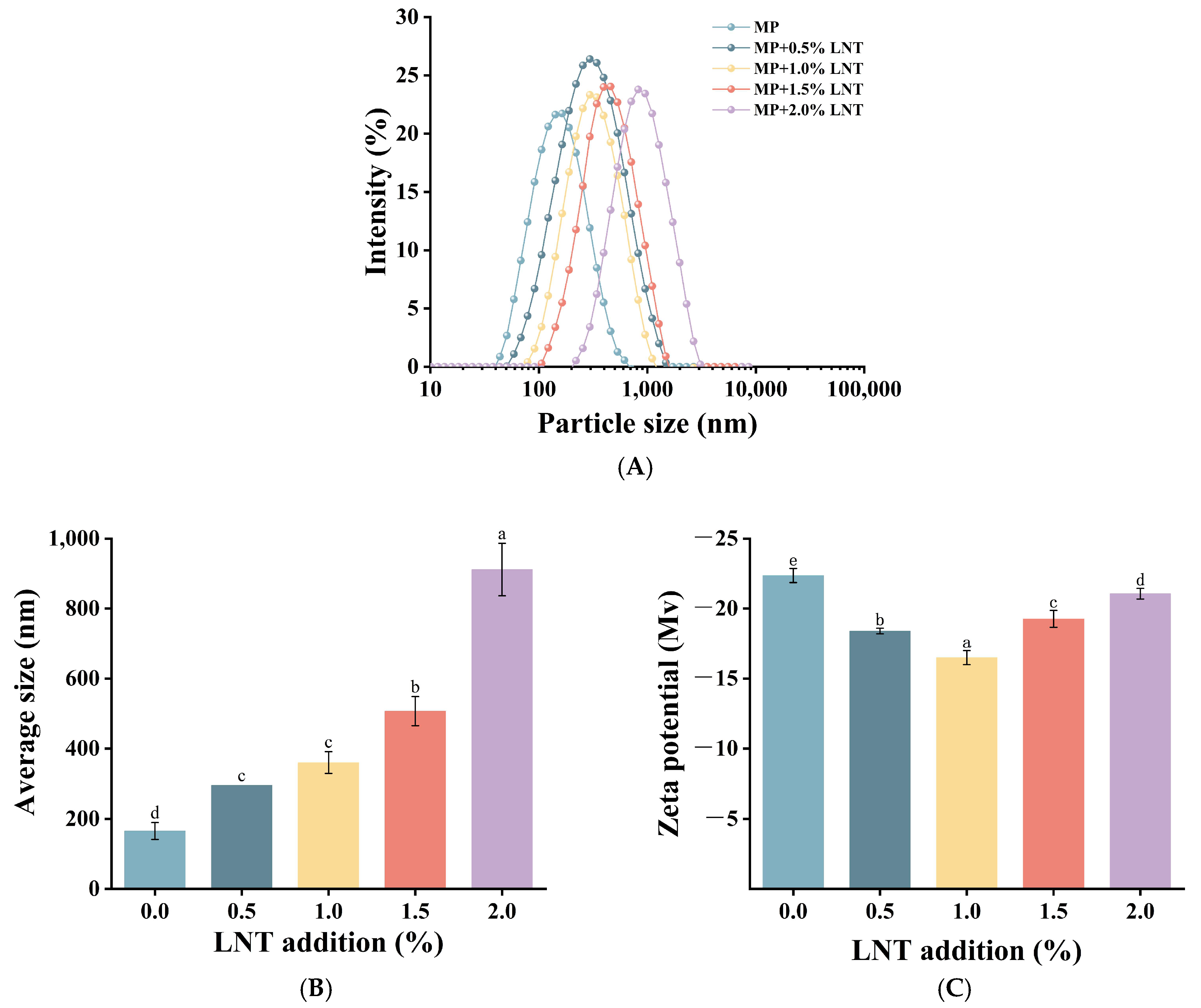 3.2. Effect of LNT Addition on the Interaction Mechanism of LNT-MP Composite Gels