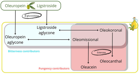 - Mateos, R.; Cert, A.; Pérez-Camino, M.C.; García, J.M. Evaluation of virgin olive oil bitterness by quantification of secoiridoid derivatives. J. Am. Oil Chem. Soc. 2004, 81, 71–75. [Google Scholar] [CrossRef]