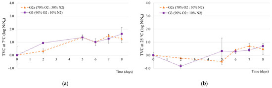 | TVC at 25 °C * | 0.0 ± 0.0 | 0.0 ± 0.2 a | 0.1 ± 0.2 a | 0.1 ± 0.3 a | 1.0 ± 0.4 A | 1.2 ± 0.2 A | 1.3 ± 0.3 A |