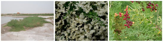 - Wang, W.; Du, W.; Wang, S. Study on development of Nitraria sibirica Pall. in the East of Hebei Province. Chin. Wild Plant Resour. 2009, 28, 29–31, 35. [Google Scholar]