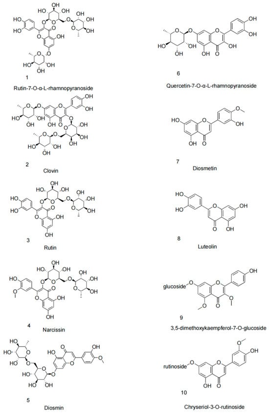 | 5 | Diosmin | Leaves | C28H32O15 | [51] |