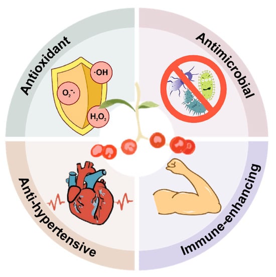 N. sibirica has emerged as a focal point in pharmacological research due to its multifaceted bioactivities, including antioxidant, antimicrobial, antihypertensive, and immunomodulatory effects (Figure 2). These activities are attributed to its rich repertoire of bioactive constituents including phenolic compounds, alkaloids, polysaccharides, and trace elements. This section synthesizes advancements in pharmacological mechanisms, active constituents, and translational applications, emphasizing compound synergies (e.g., flavonoid-alkaloid interactions) and ecological adaptability (e.g., drought-induced metabolite upregulation). By bridging ethnopharmacology with modern omics technologies, N. sibirica is poised to revolutionize nutraceutical and functional food industries. The diverse healthy benefits of N. sibirica are further illustrated in Figure 3. A summary of the pharmacological activities reported for N. sibirica in multiple previous studies is provided in Table 3.