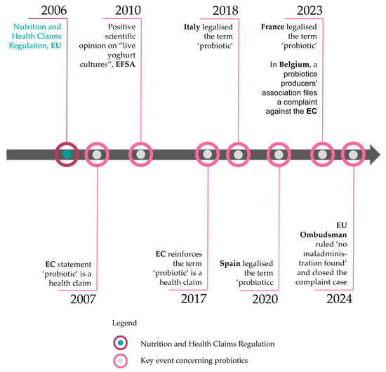 - European Ombudsman. Decision on How the European Commission Deals with the Labelling of Foodstuff that Contain Probiotics as ‘Health Claims’ (Case 2273/2023/MIK). 2024. Available online: https://www.ombudsman.europa.eu/en/decision/en/197581 (accessed on 8 March 2025).