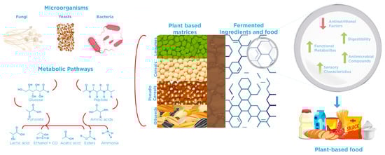 Despite the numerous advantages of plant-based sources, critical reflection is essential to understand and address their limitations for successfully guiding the development of innovative, healthier, and more sustainable food products. In this context, the next generation of plant-based foods should focus on harnessing the full compositional complexity of raw plant materials. By applying processing strategies, it is possible to assess their techno-functional potential while addressing current formulation challenges. In this context, microorganisms with strong enzymatic activity can be utilized through fermentation to overcome the sensory, nutritional, and functional limitations of plant-based sources. Microorganisms can serve as a sustainable and versatile source of nutrients and bioactive compounds, offering novel solutions to meet evolving consumer needs. Therefore, in the next section, the food processor and researcher seek information about the effects of different microbial strategies in developing innovative food ingredients.