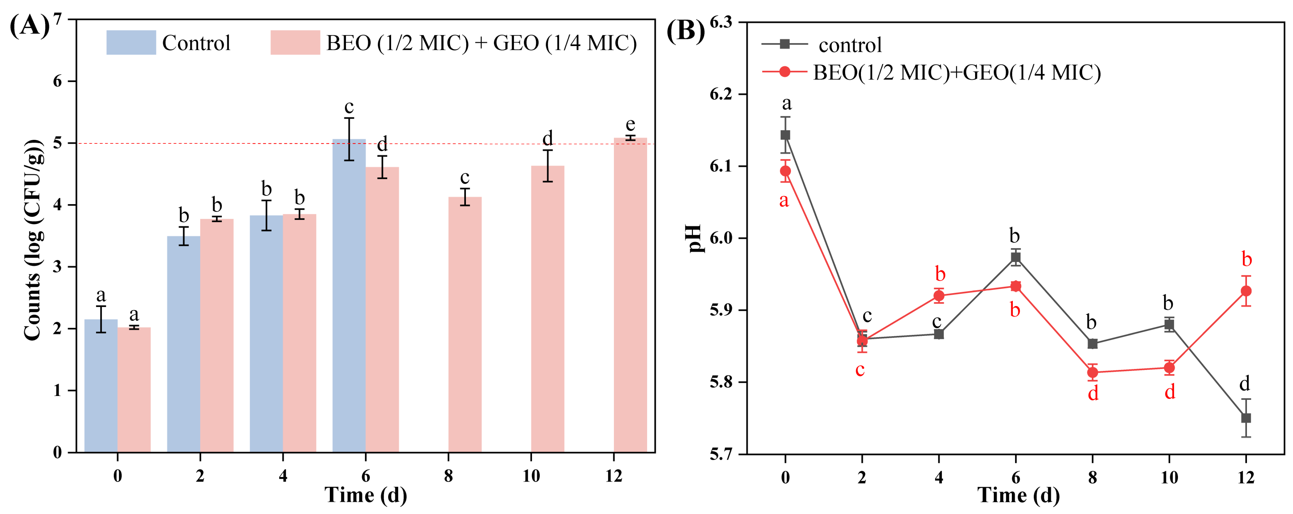3.3. The Preservative Effect of BEO and GEO on Braised Beef