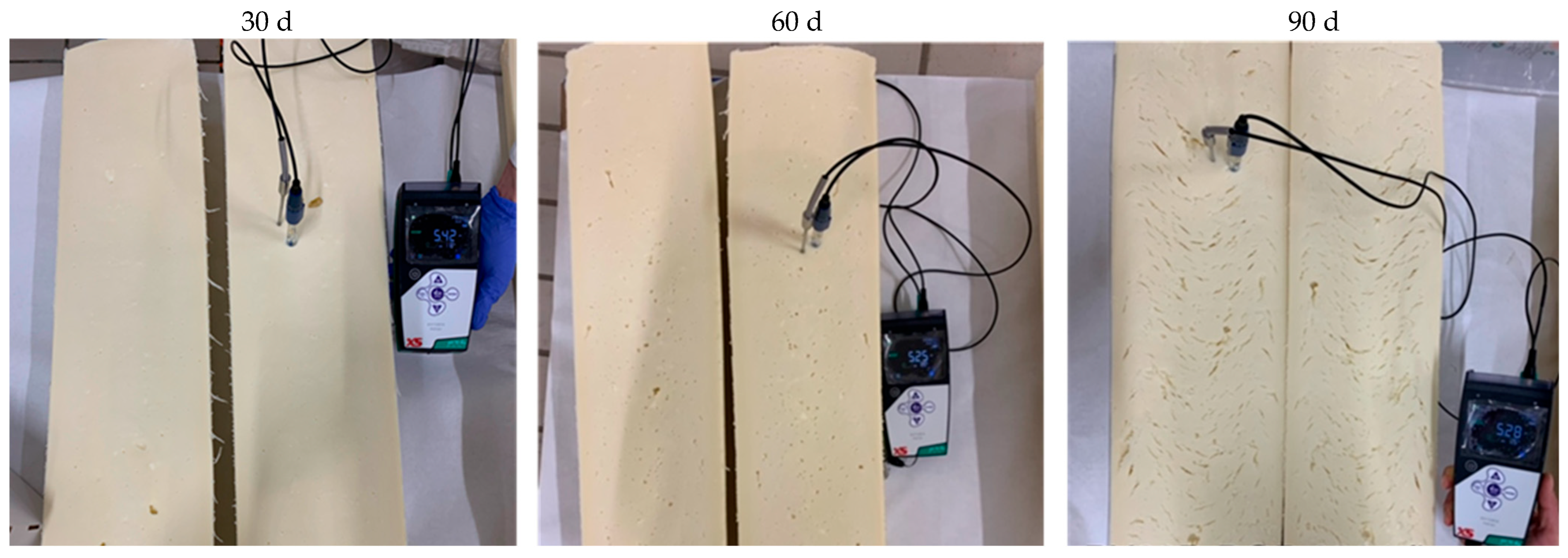 - Fox, P.F.; Cogan, T.M.; Guinee, T.P. Factors that affect the quality of cheese. In Cheese: Chemistry, Physics and Microbiology; McSweeney, P.L.H., Fox, P.F., Everett, D.W., Eds.; Academic Press: London, UK, 2017; pp. 617–641. [Google Scholar]