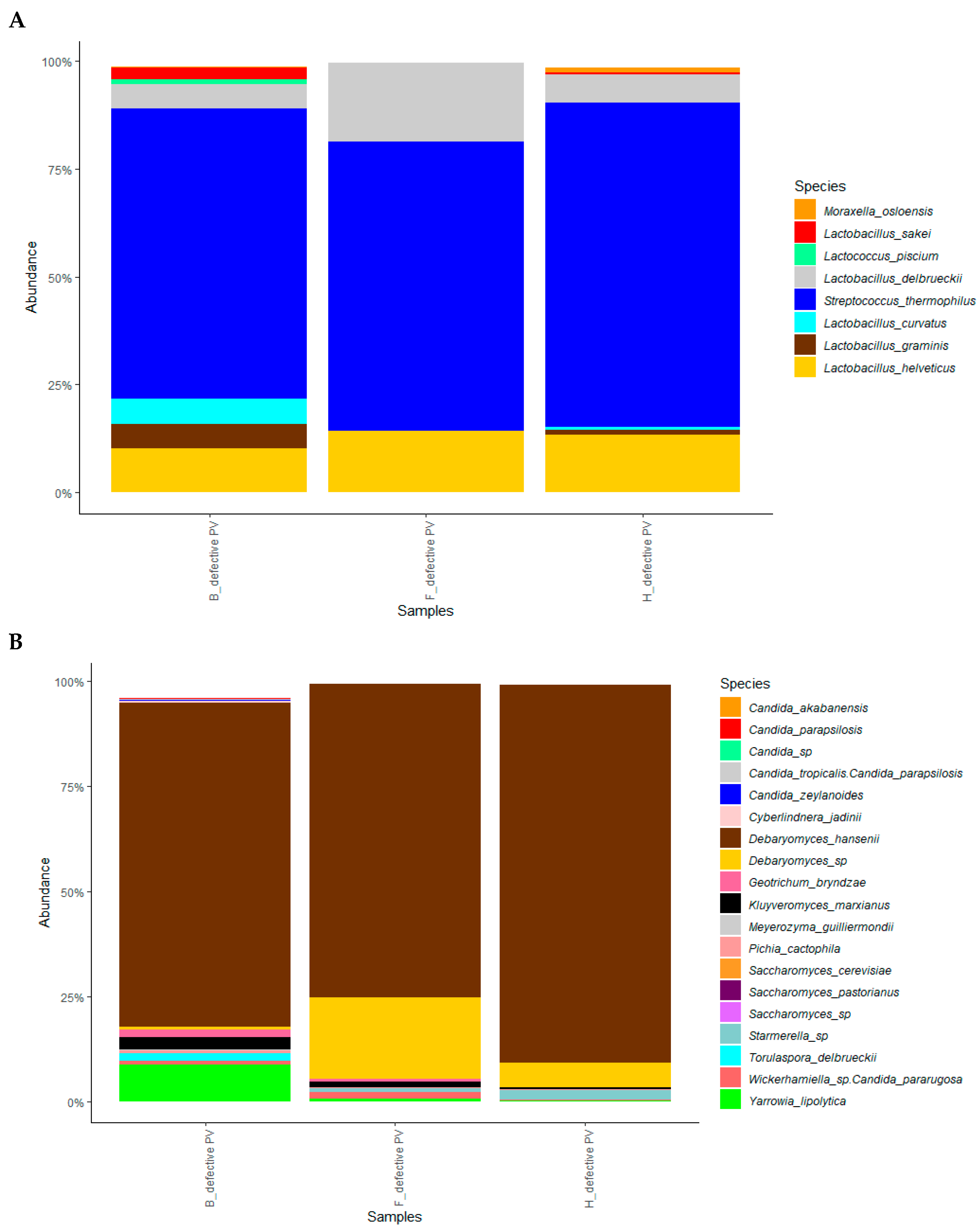 | Samples | Coliforms | Heterofermentative LAB | Leuconostoc spp. | Spore-forming bacteria | Yeasts | Molds | Propionibacteria |