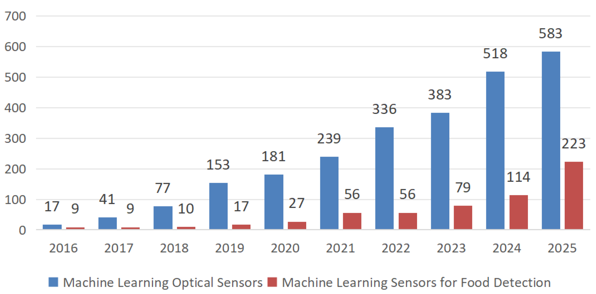A Review of High-Throughput Optical Sensors for Food Detection Based on Machine Learning