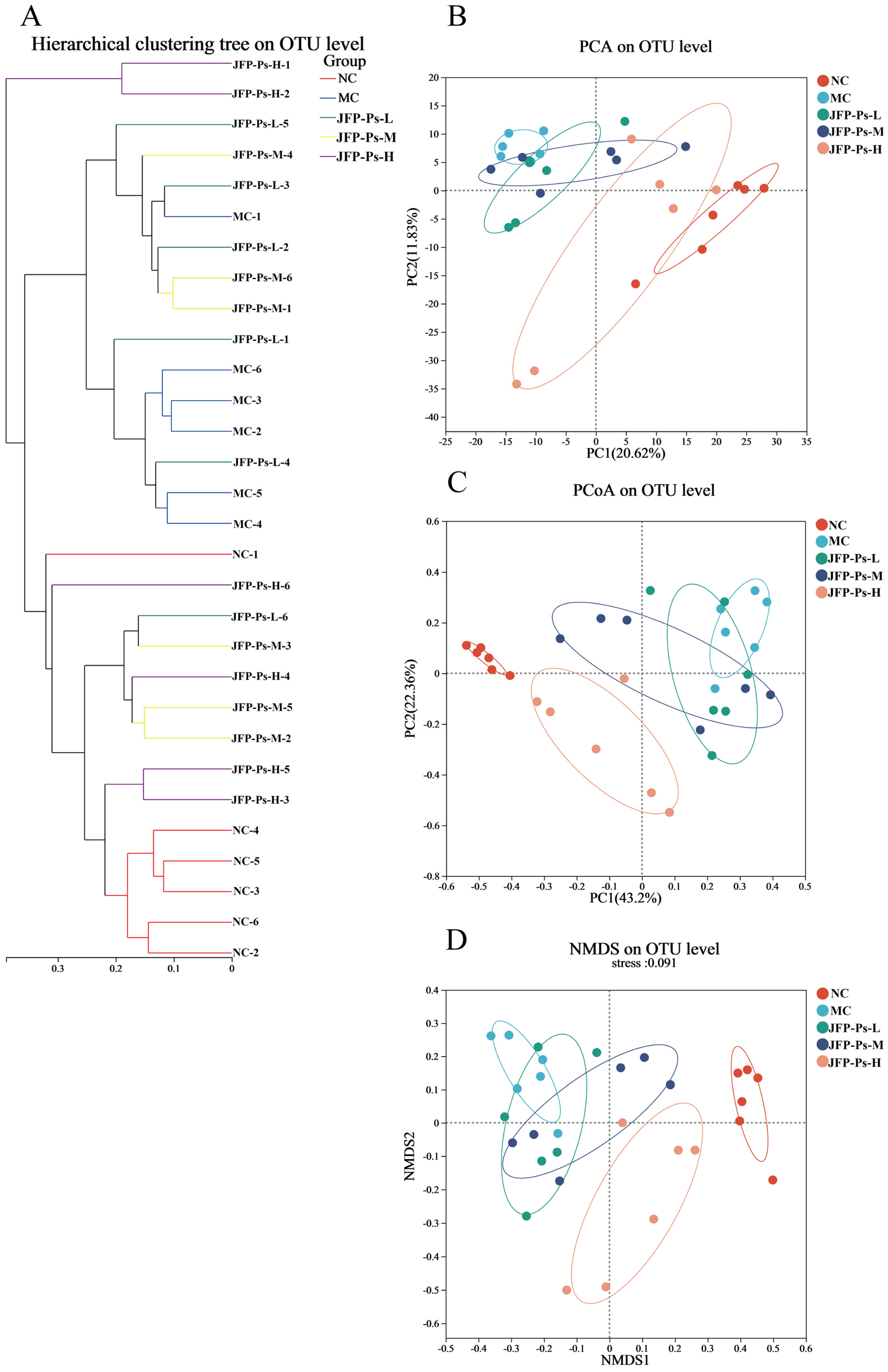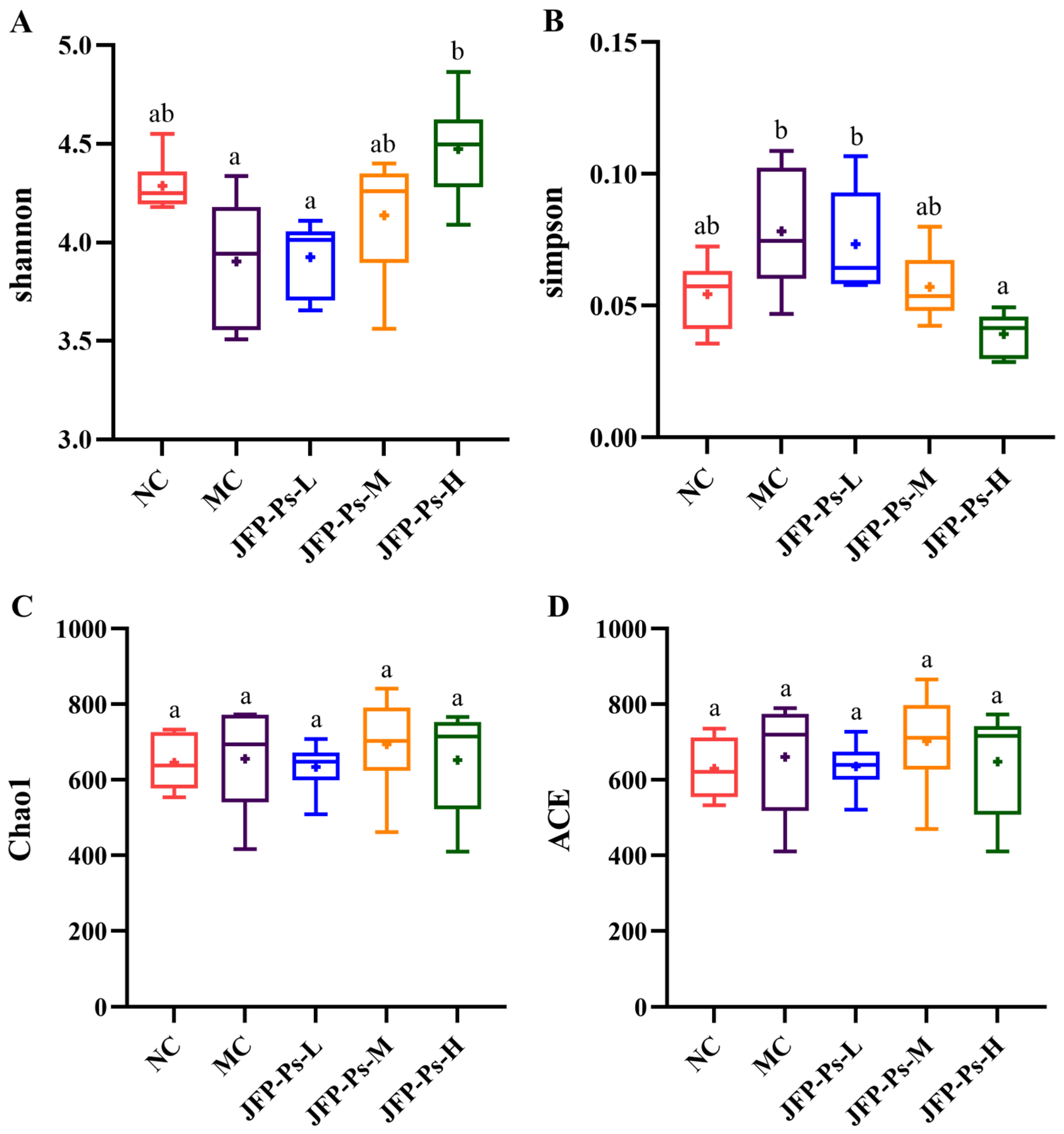 3.1. JFP-Ps Regulated the Intestinal Microbiota Structure of Immunosuppressed Mice