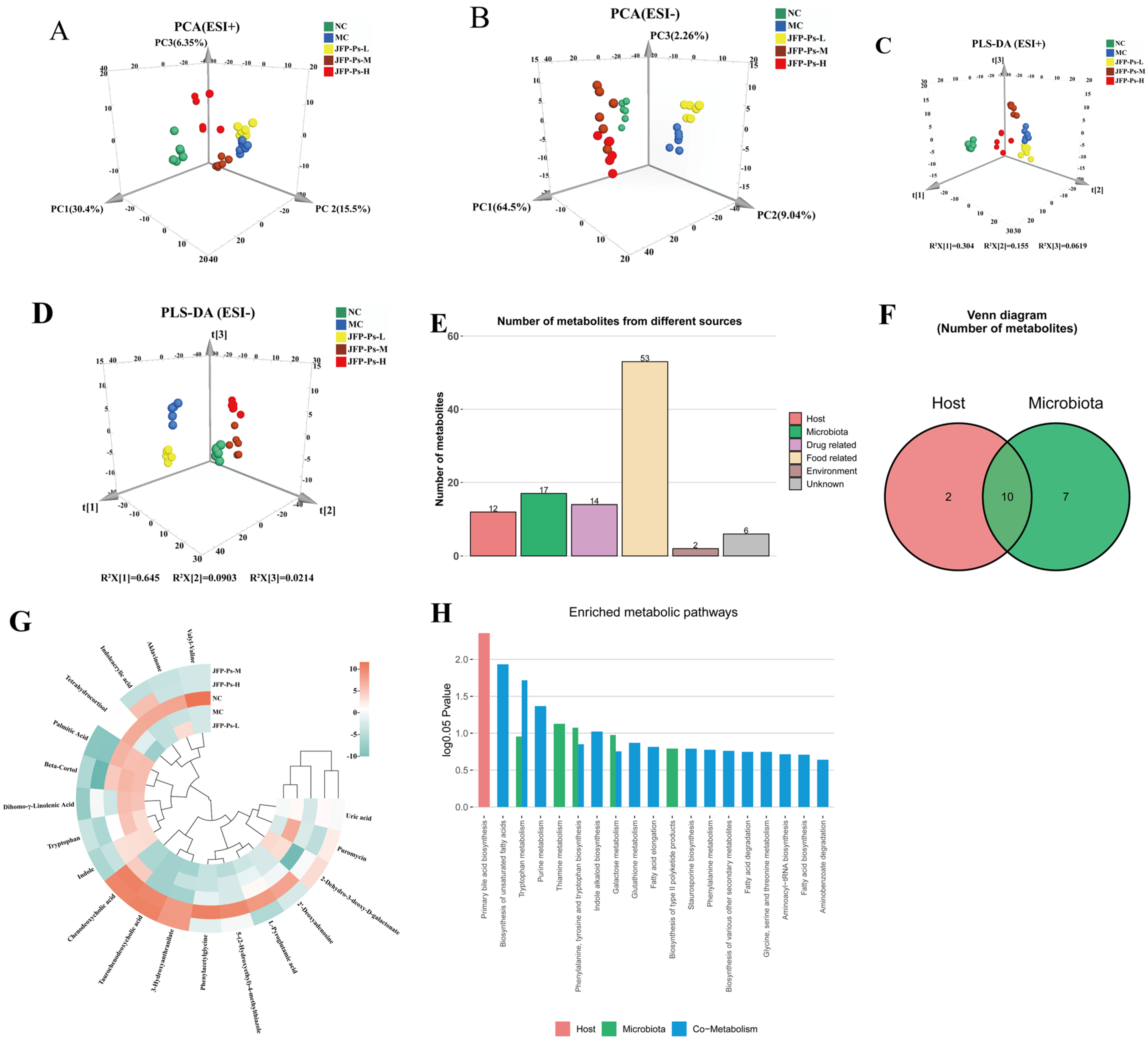 3.3. JFP-Ps Altered the Fecal Metabolic Profile of Immunosuppressed Mice