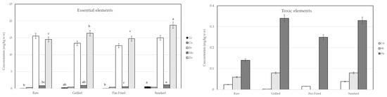 - Rajkowska-Myśliwiec, M.; Pokorska-Niewiada, K.; Witczak, A.; Balcerzak, M.; Ciecholewska-Juśko, D. Health benefits and risks associated with element uptake from grilled fish and fish products. J. Sci. Food Agric. 2022, 102, 957–964. [Google Scholar] [CrossRef] [PubMed]