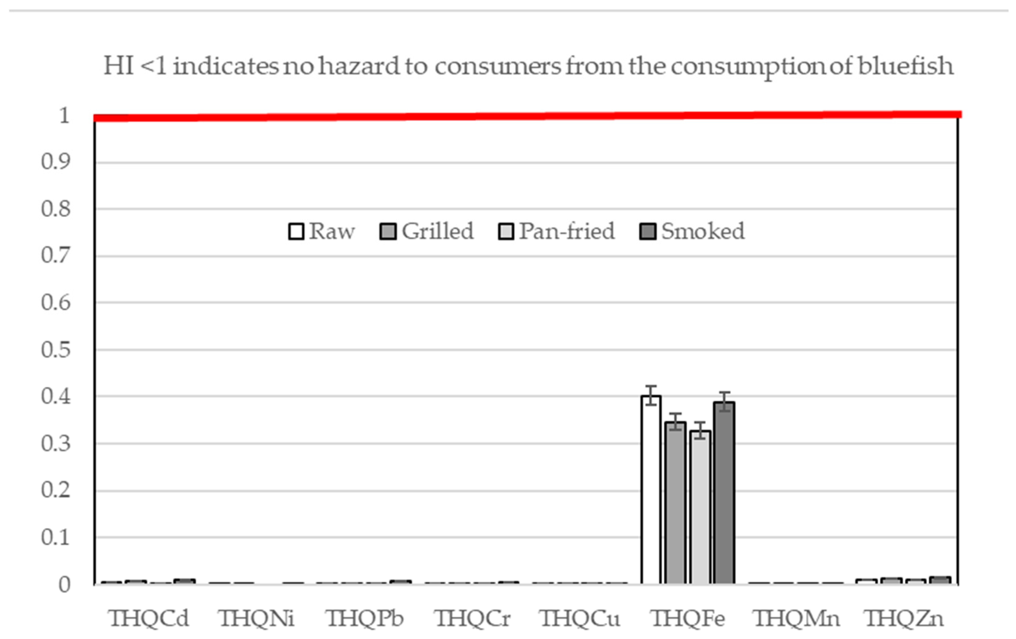 | Estimated daily intake (mg/day/70 kg body weight) | Raw | 8.0 × 10−5 | 3.8 × 10−3 | 3.5 × 10−3 | 2.2 × 10−5 | 2.0 × 10−4 | 5.8 × 10−6 | 1.5 × 10−5 | 3.4 × 10−5 |