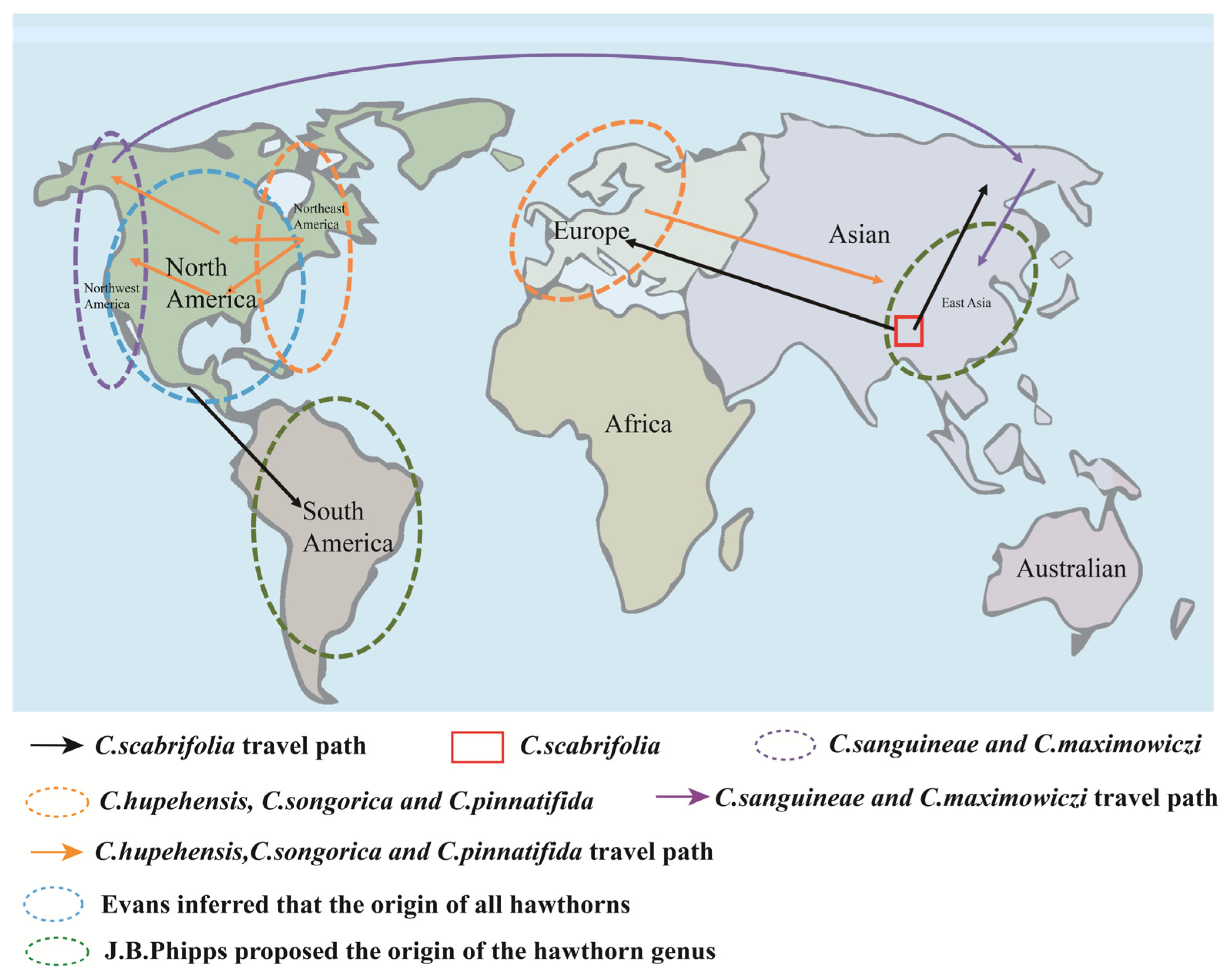 - Phipps, J.B. Biogeographic, taxonomic, and cladistic relationships between East Asiatic and North American Crataegus. Ann. Mo. Bot. Gard. 1983, 70, 667–700. [Google Scholar] [CrossRef]