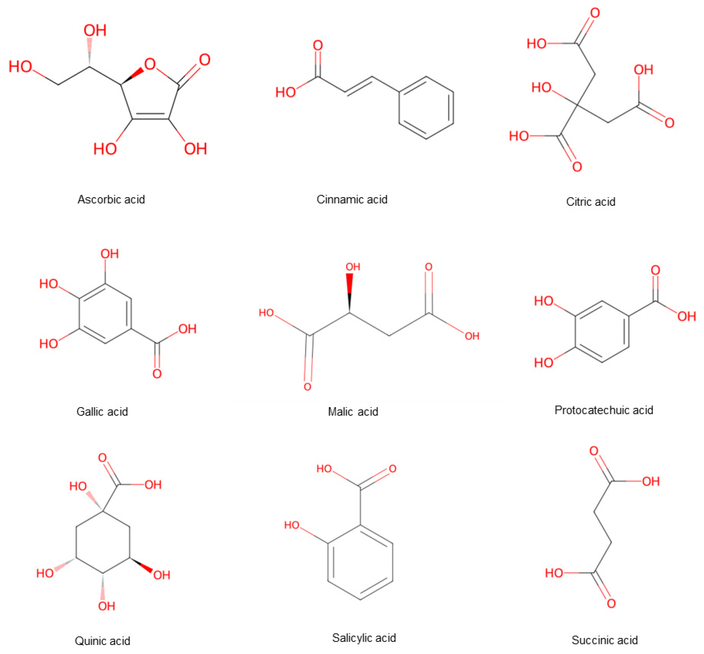 - Jiang, H. Research progress on character identification and organic acid compositions of Shanzha (Crataegus pinnatifida), Nanshanzha (south Crataegus) and Guangshanzha (cantonese Crataegus). J. Liaoning Univ. Tradit. Chin. Med. 2023, 25, 132–137, (In Chinese with English abstract). [Google Scholar] [CrossRef]