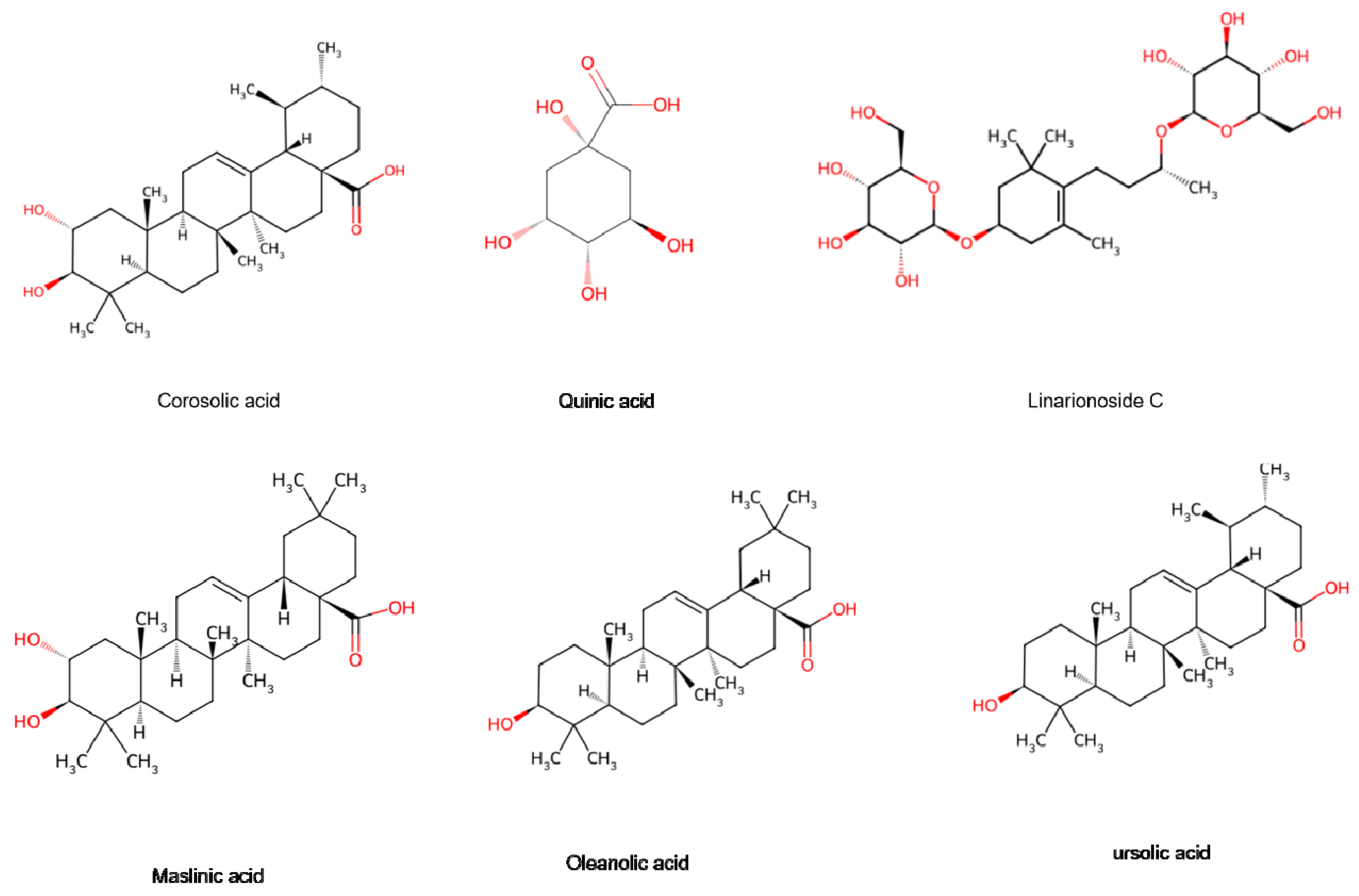 - Wen, L.; Guo, R.; You, L.; Abbasi, A.M.; Li, T.; Fu, X.; Liu, R.H. Major triterpenoids in Chinese hawthorn “Crataegus pinnatifida” and their effects on cell proliferation and apoptosis induction in MDA-MB-231 cancer cells. Food Chem. Toxicol. 2017, 100, 149–160. [Google Scholar] [CrossRef]