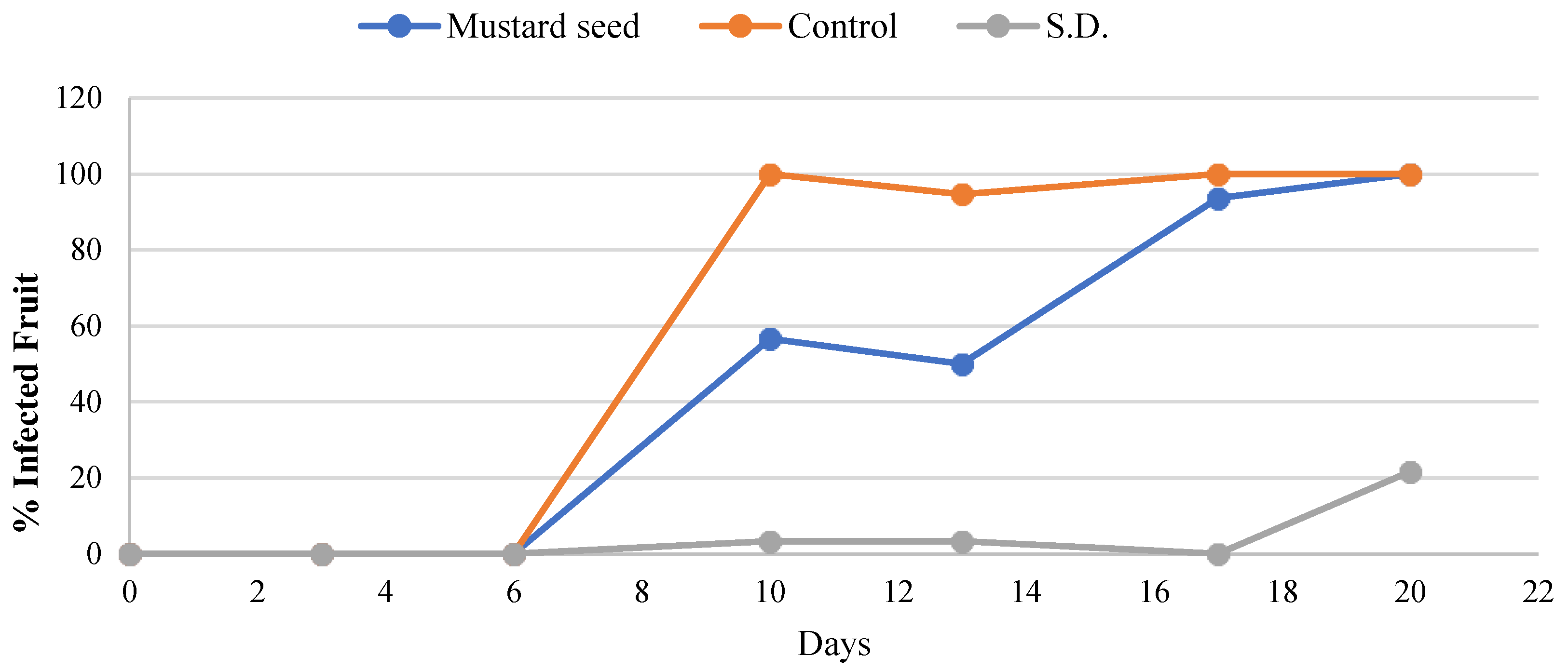 - Fludioxonil-treated sweet cherries + 50 mg of black mustard seeds (“Inbox” format) (T4)