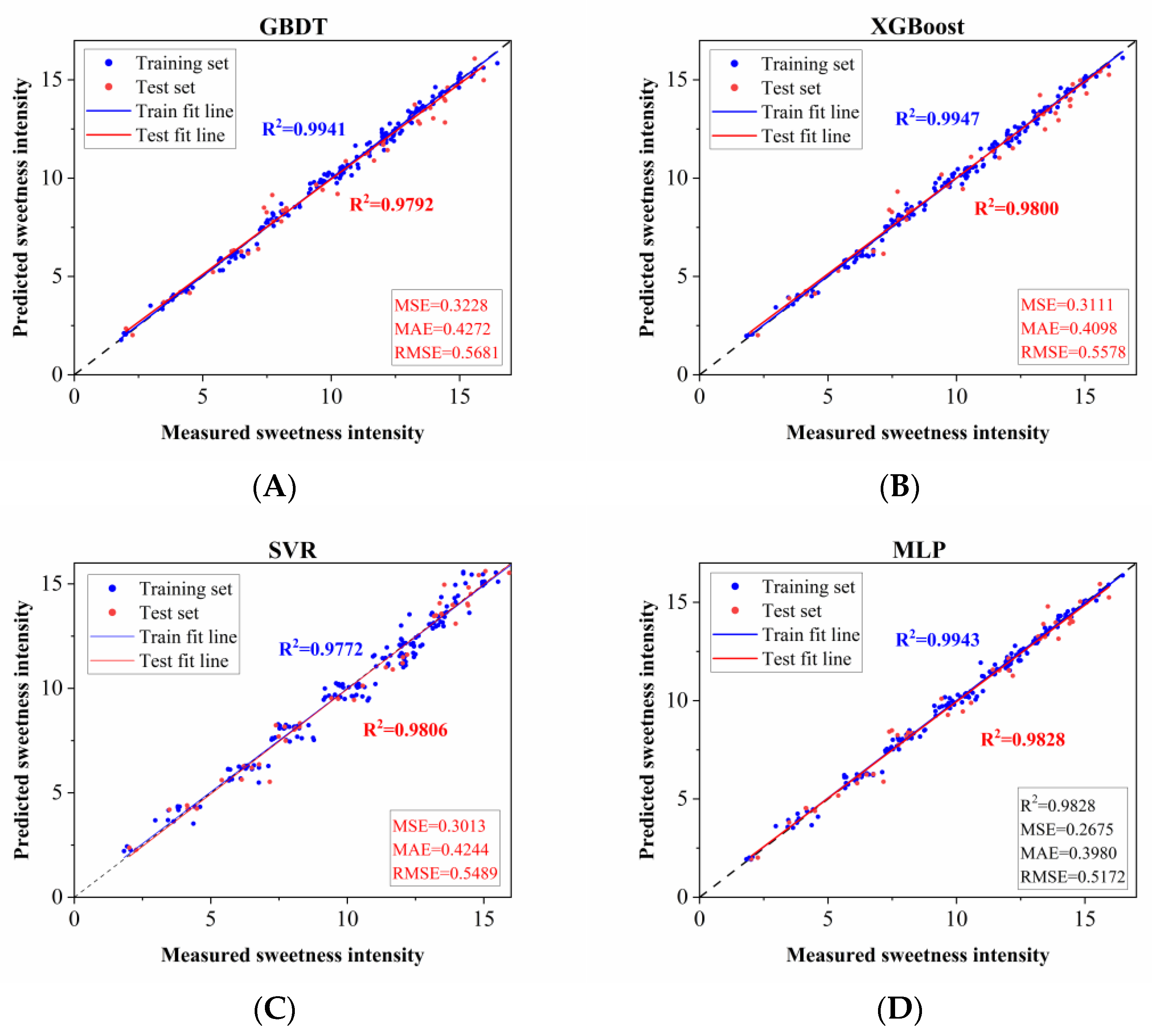 3.3.1. Regression Model Performance Evaluation for Ternary Sweeteners