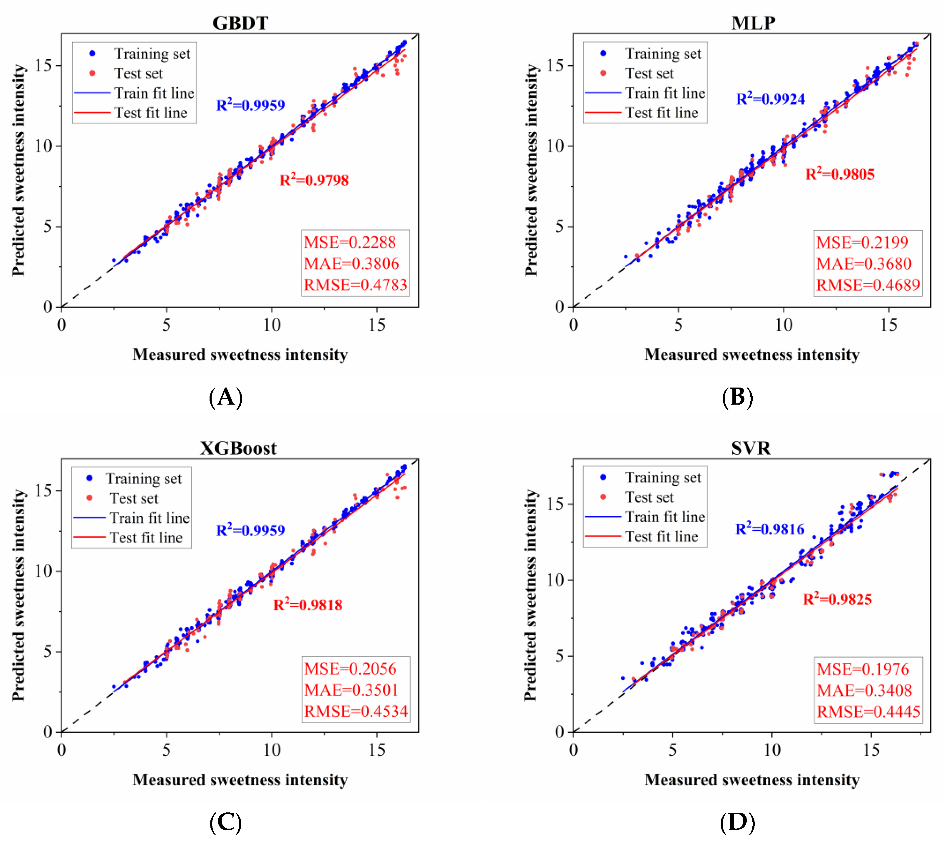 3.1.1. Regression Model Performance Evaluation for Binary Sweeteners