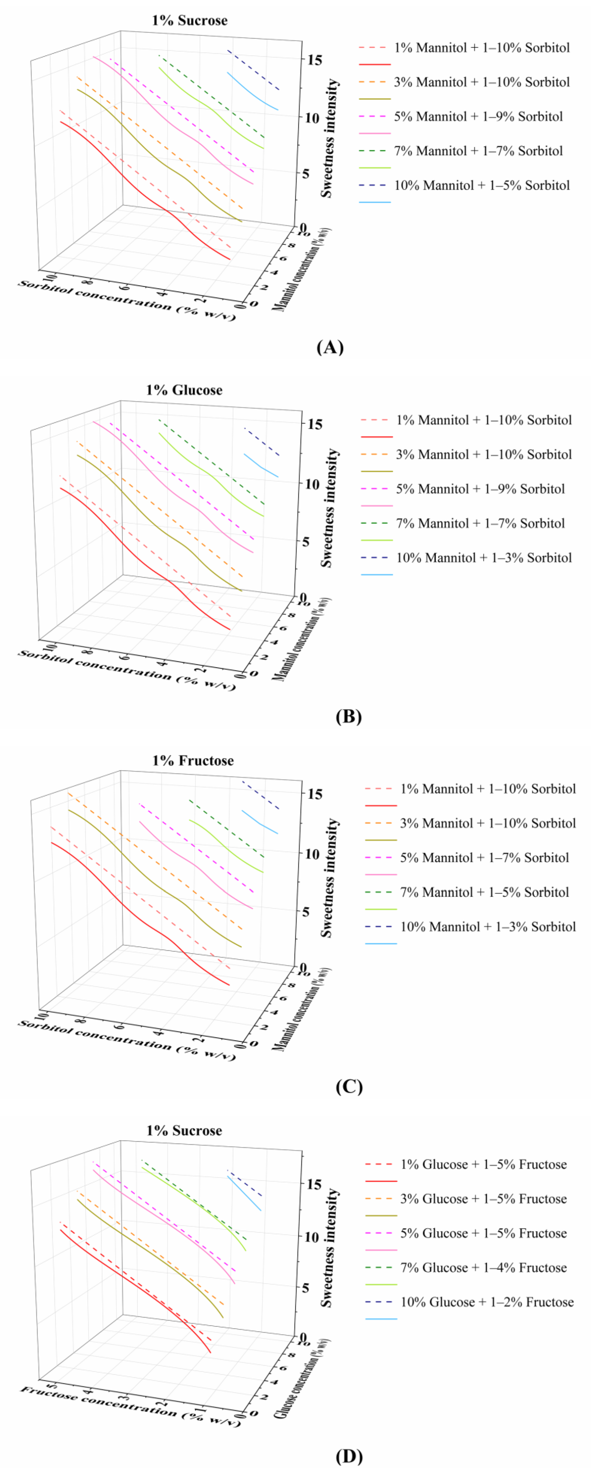 | Mannitol concentration | Weight/volume percentage (%) of mannitol in the sweetener mixture |