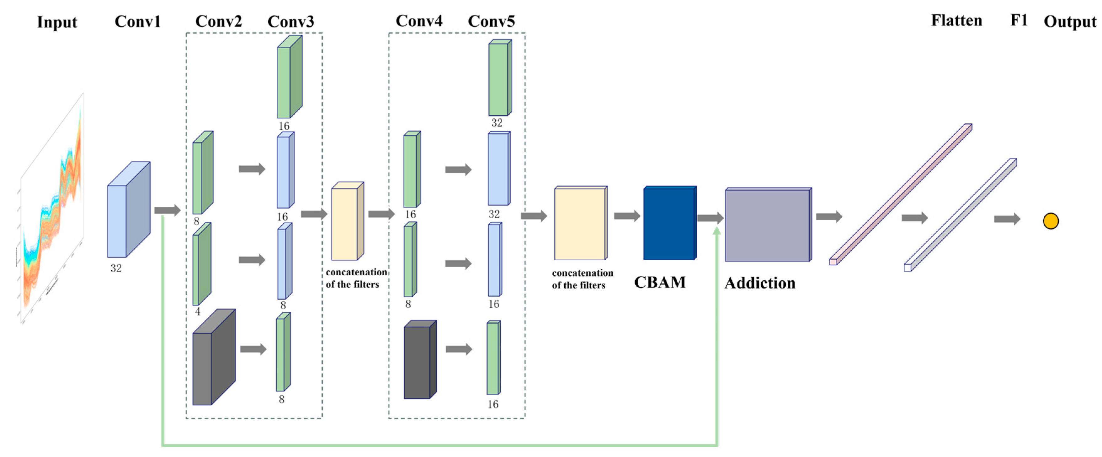 2.4. IncepSpect-CBAM Model Architecture