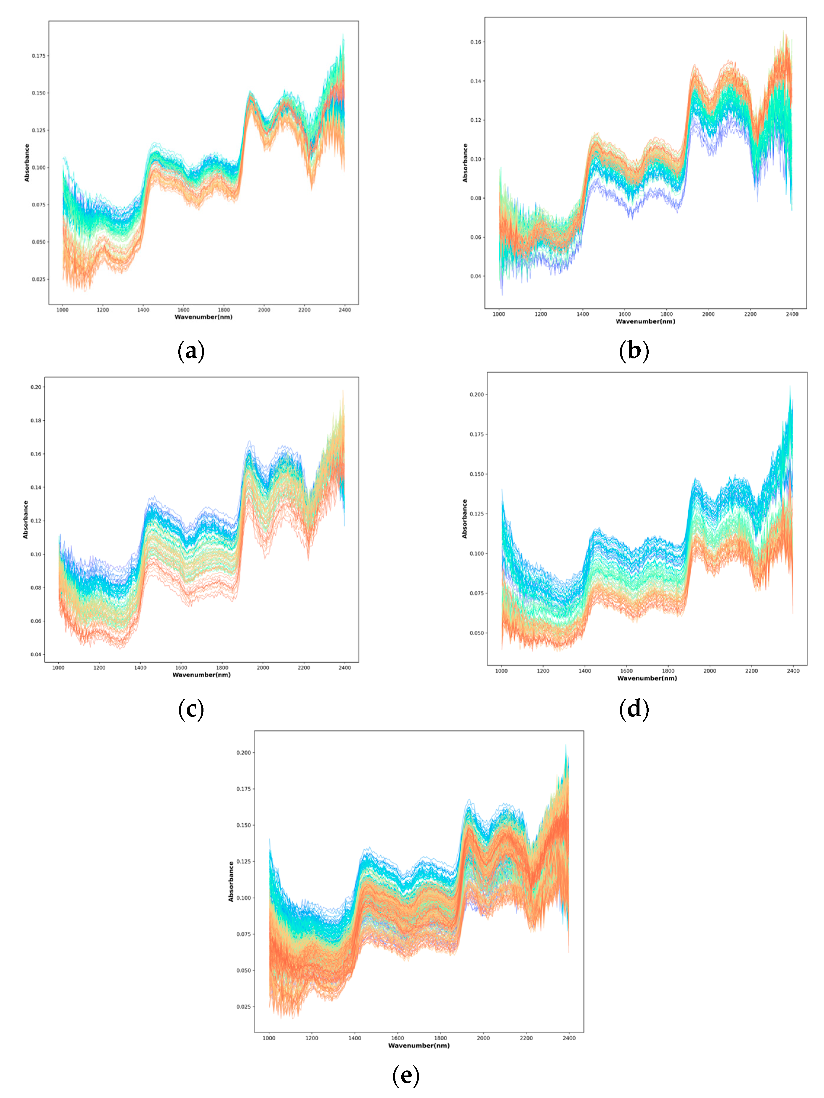- Yan, J.; Wang, G.T.; Du, H.L.; Liu, Y.D.; Ouyang, A.G.; Hu, M.M. Convolutional neural networks fusing spectral shape features with attentional mechanisms for accurate prediction of soluble solids content in apples. J. Food Meas. Charact. 2025, 19, 412–423. [Google Scholar] [CrossRef]