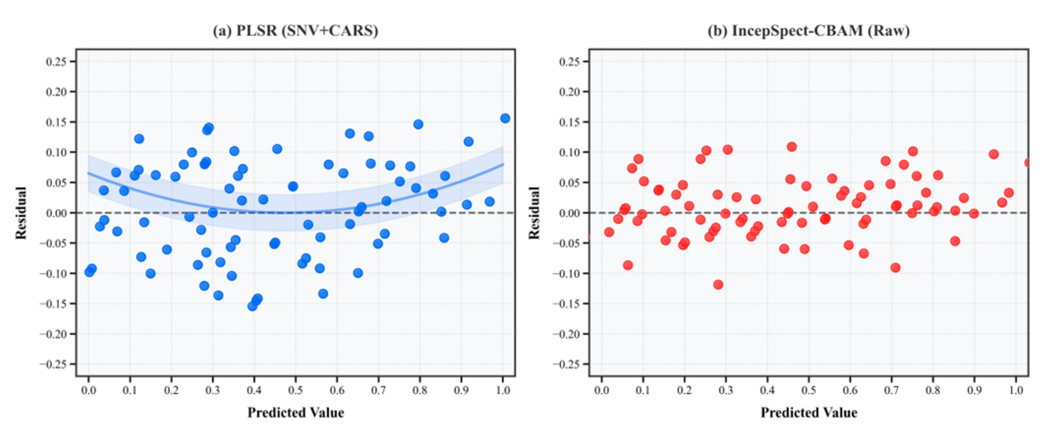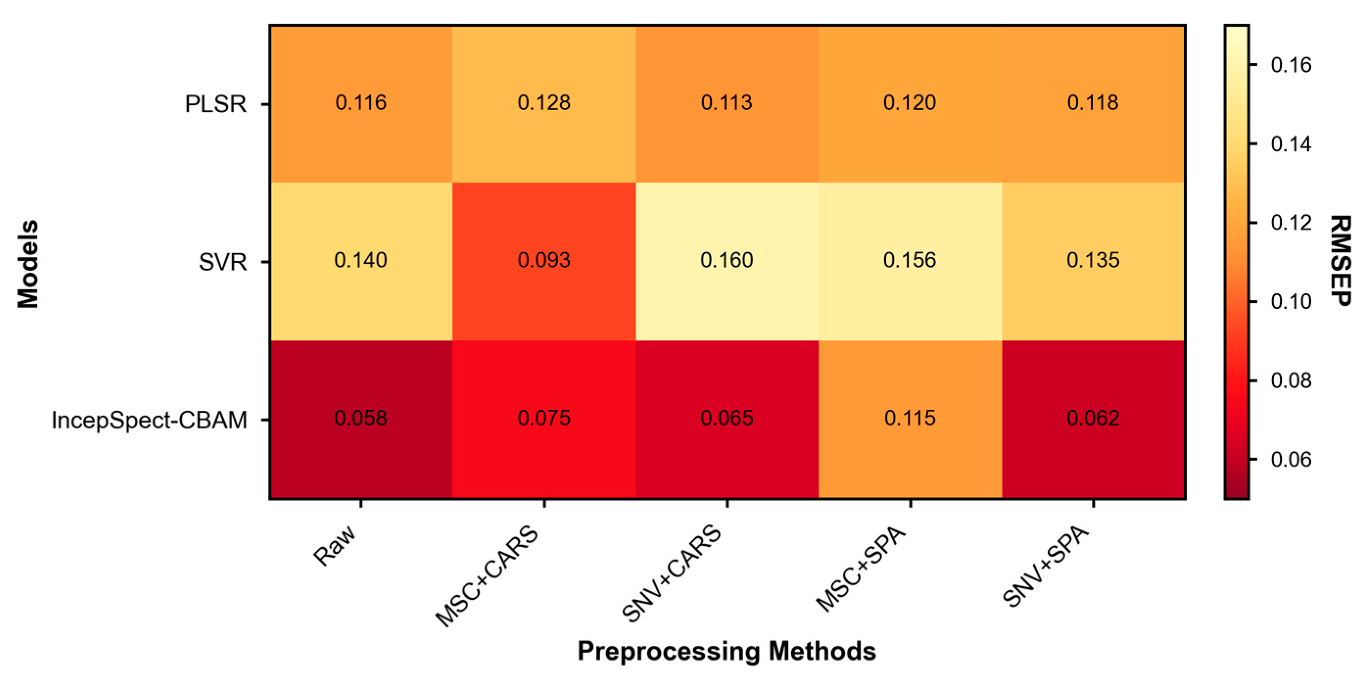 - This study evaluates the proposed IncepSpect-CBAM model against several benchmark models including the 1D-CNN and DeepSpectra deep learning architectures as well as traditional PLSR and SVR methods, convincingly demonstrating its performance advantages.