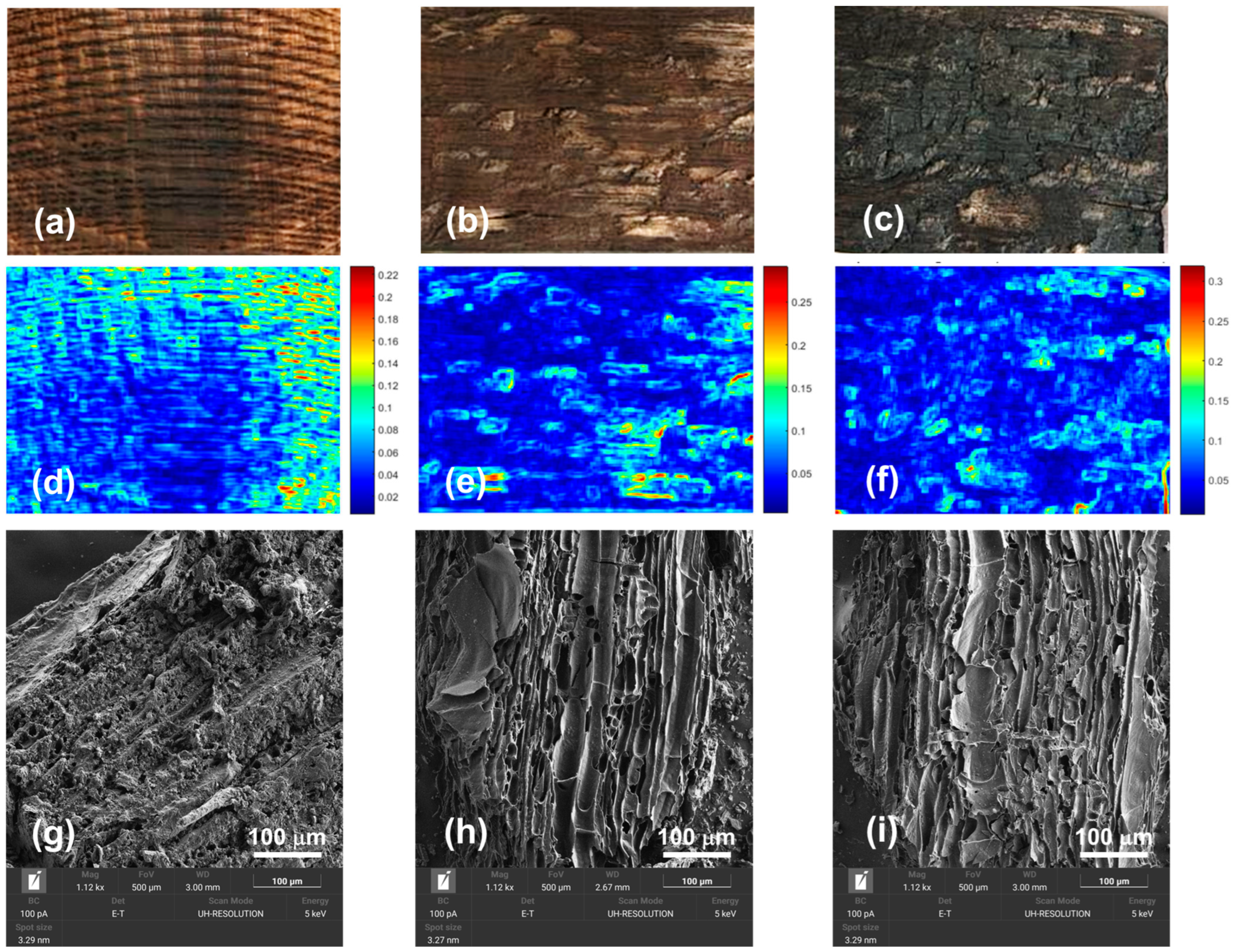 - Özgenç, Ö.; Durmaz, S.; Boyaci, I.H.; Eksi-Kocak, H. Determination of Chemical Changes in Heat-Treated Wood Using ATR-FTIR and FT Raman Spectrometry. Spectrochim. Acta A Mol. Biomol. Spectrosc. 2017, 171, 395–400. [Google Scholar] [CrossRef] [PubMed]