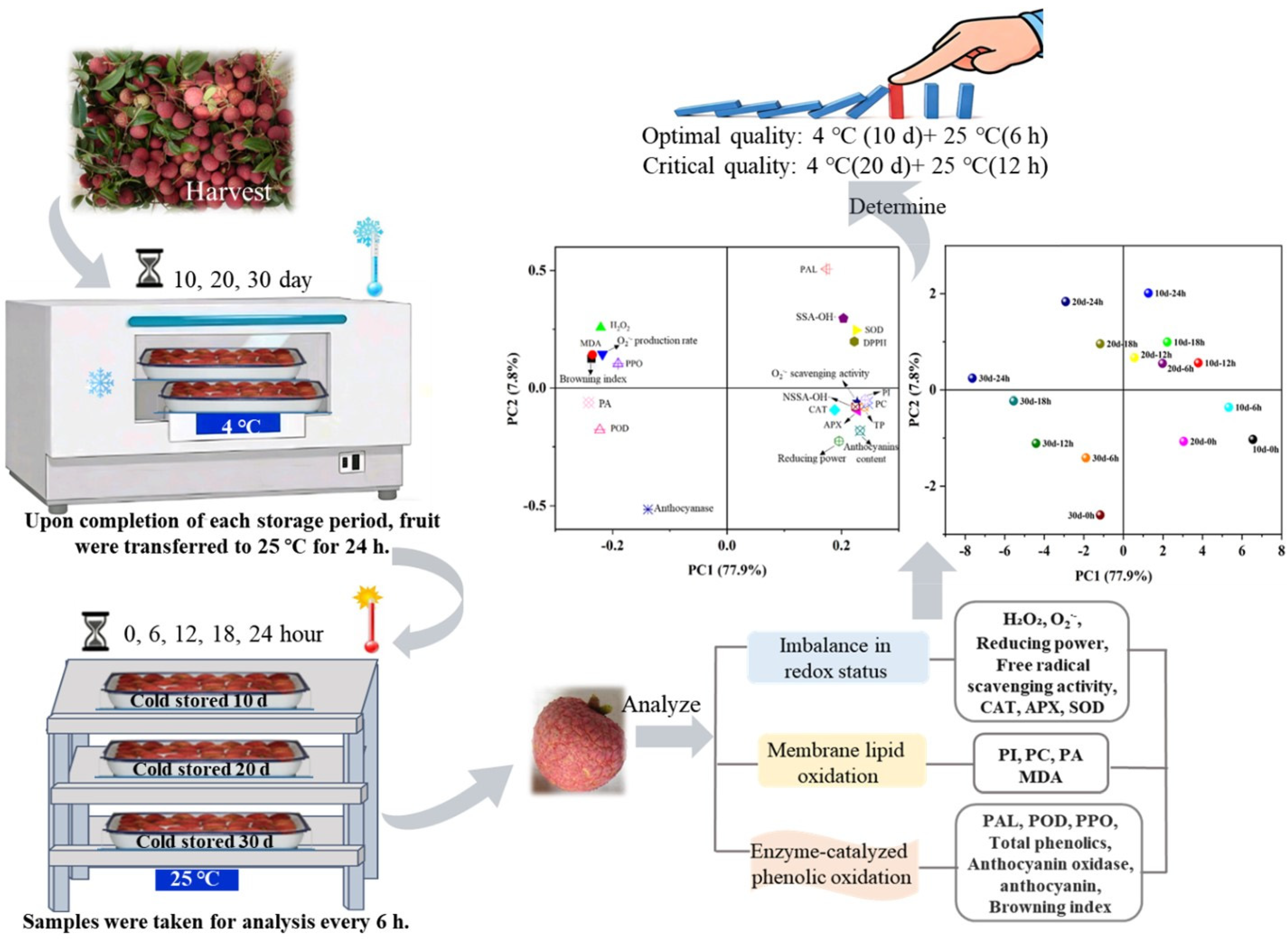 Liu, H.; Xu, Z.; Song, L.; Li, L.; Liao, Y.; Du, H.; Li, F. Mechanisms and Critical Thresholds of Cold Storage Duration-Modulated Postharvest Quality Deterioration in Litchi Fruit During Ambient Shelf Life. Foods 2026, 15, 176. https://doi.org/10.3390/foods15010176