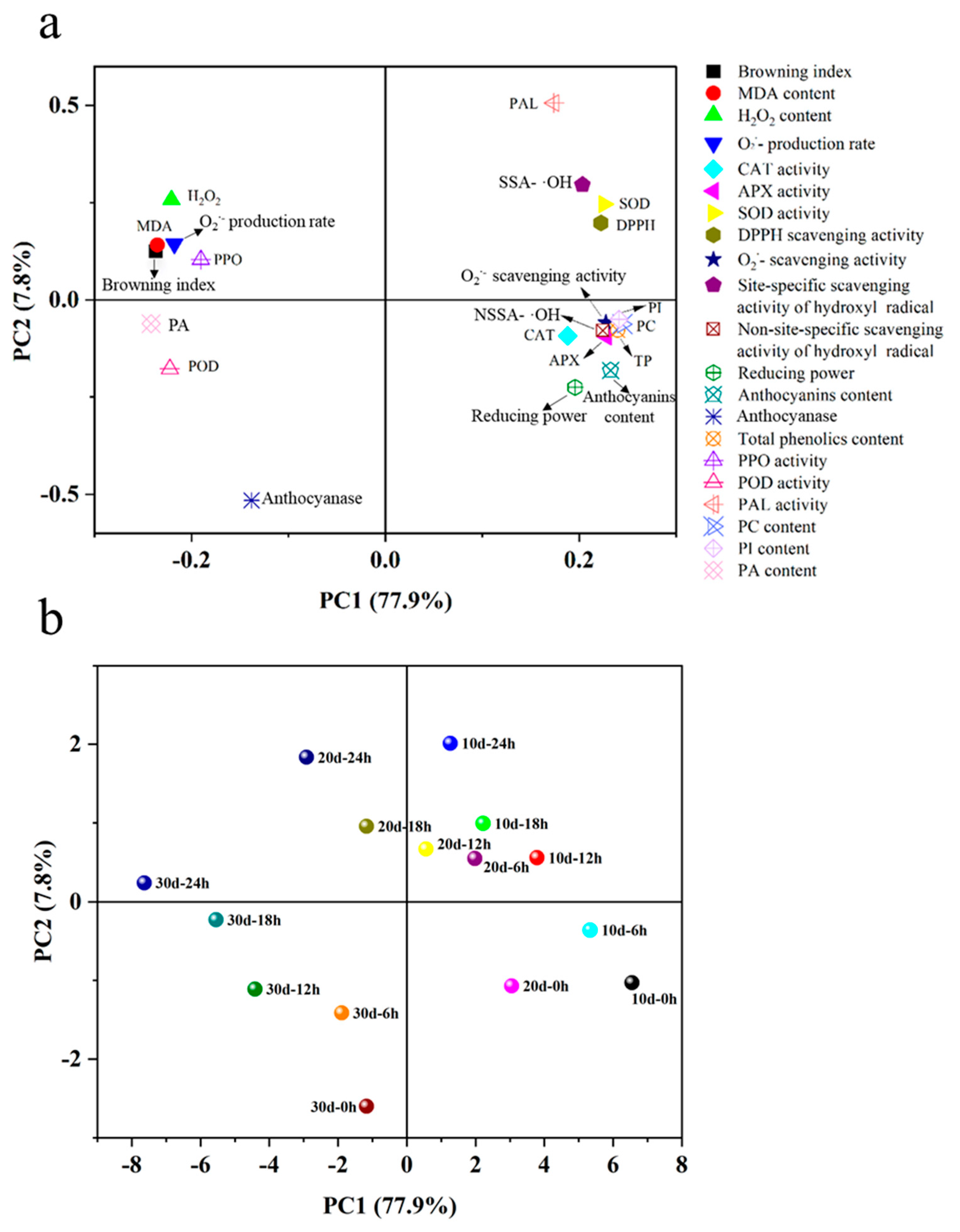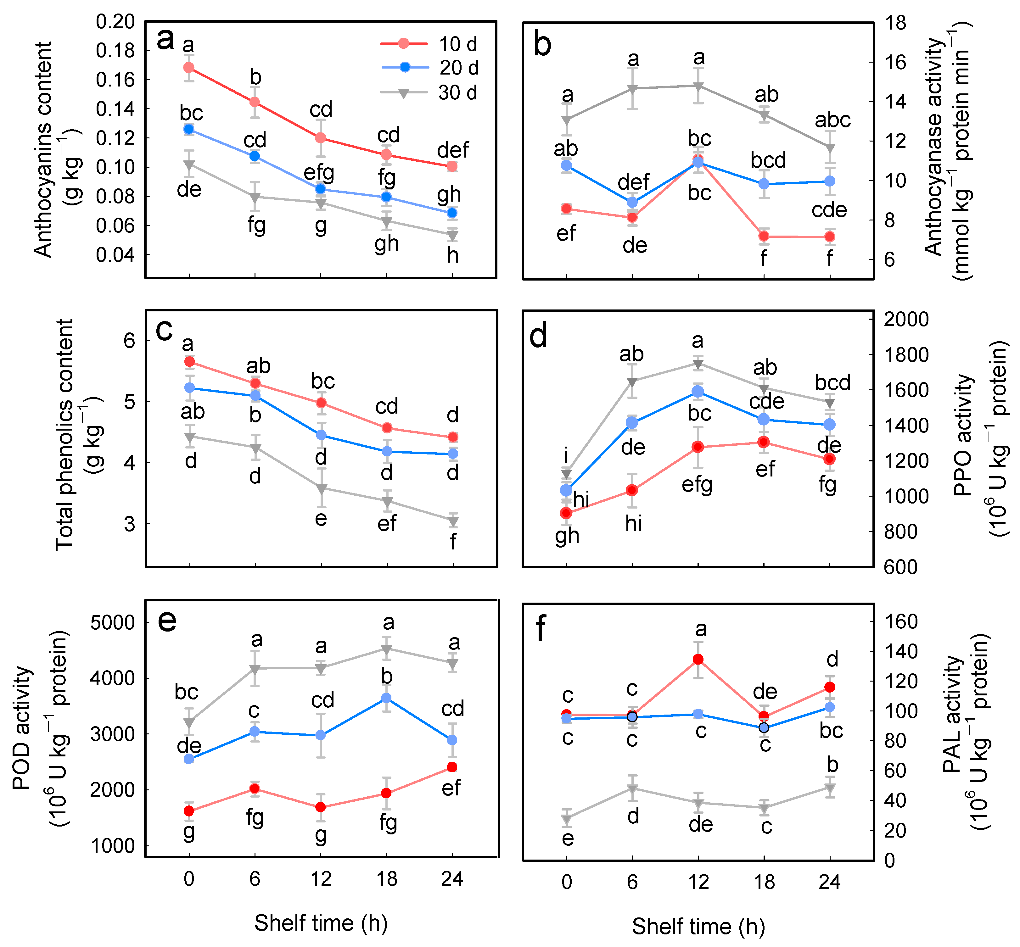 2.6. Determination of Activities of PPO, POD, PAL, and Anthocyanase