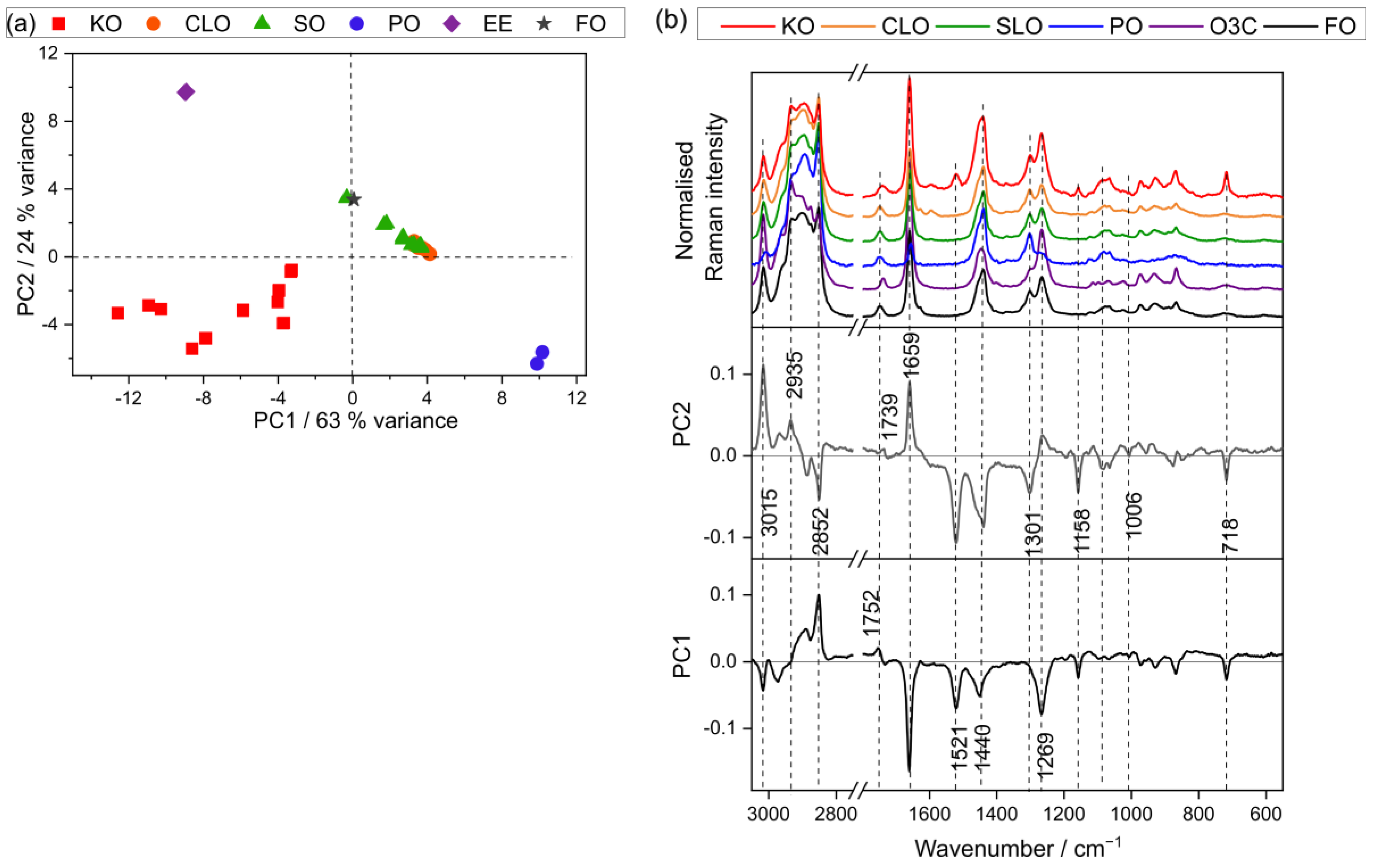 - Dong, W.; Zhang, Y.; Zhang, B.; Wang, X. Rapid prediction of fatty acid composition of vegetable oil by Raman spectroscopy coupled with least squares support vector machines. J. Raman Spectrosc. 2013, 44, 1739–1745. [Google Scholar] [CrossRef]