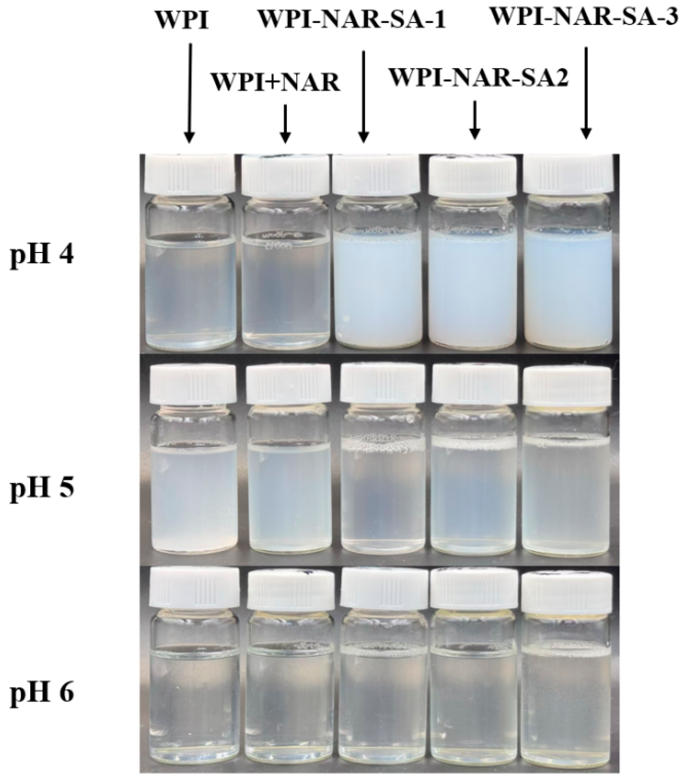 | pH Treatment | WPI | WPI-NAR | WPI-NAR-SA-1 | WPI-NAR-SA-2 | WPI-NAR-SA-3 |